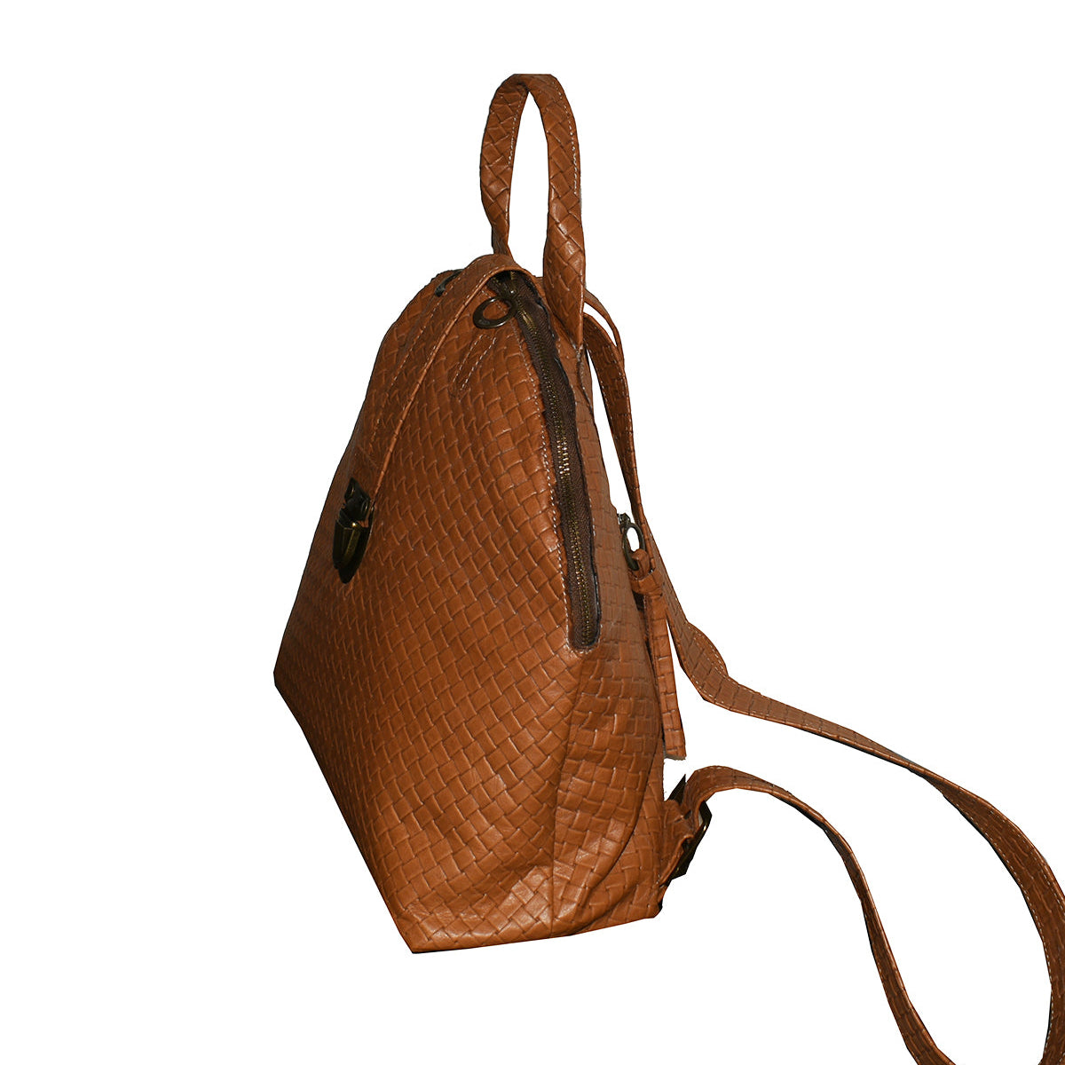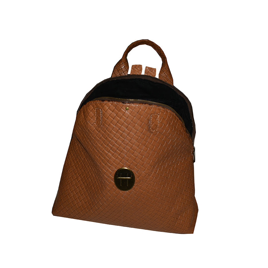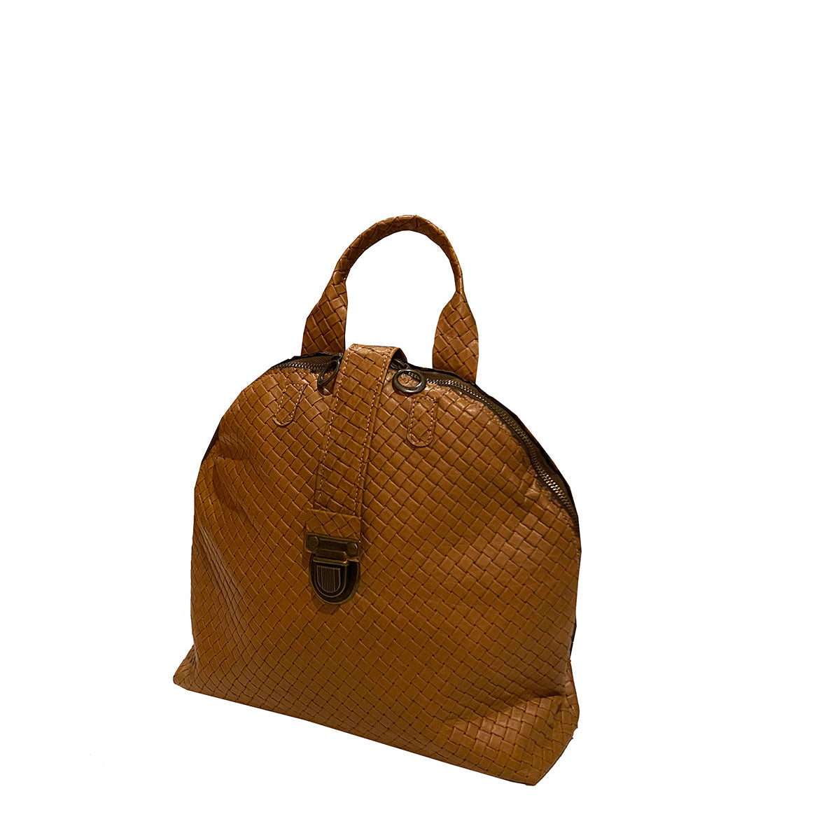 תיק גב גדול מעור חום חיטה קלוע איטלקי מהמם המשדר אלגנטיות מתוחכמת בכל פרט!
