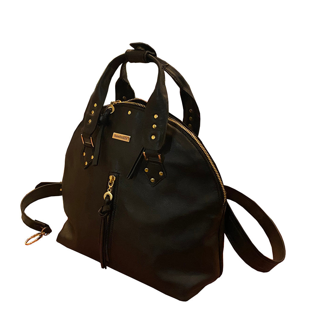 תיק יד מעור שחור חצי עגול מהודר ואלגנט עם ניטים מזהב