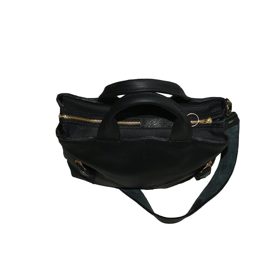 בחלק הקדמי של התיק שני רוכסנים אלכסוניים דקורטיביים, הממוקמים בזוויות מושלמות ליצירת תחושת תנועה ודינמיות. הרוכסנים עשויים מתכת מוזהבת, המעניקה ניגודיות מעודנת למראה הכללי של התיק