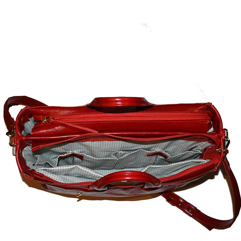 תיק הדור ואלגנטי רב תאי אדום המכיל כל פריט שלך ומאפשר לך למצוא מהר ובקלות את כל הדברים שאת צריכה.