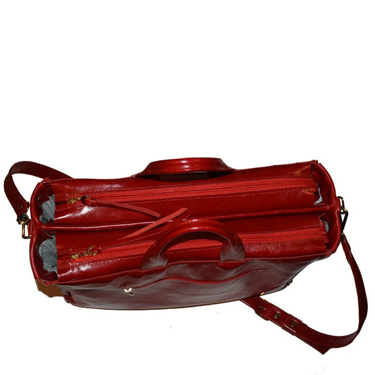 תיק נשים אדום גדול רב תאים ללפטופ וקלסרים שני תאים