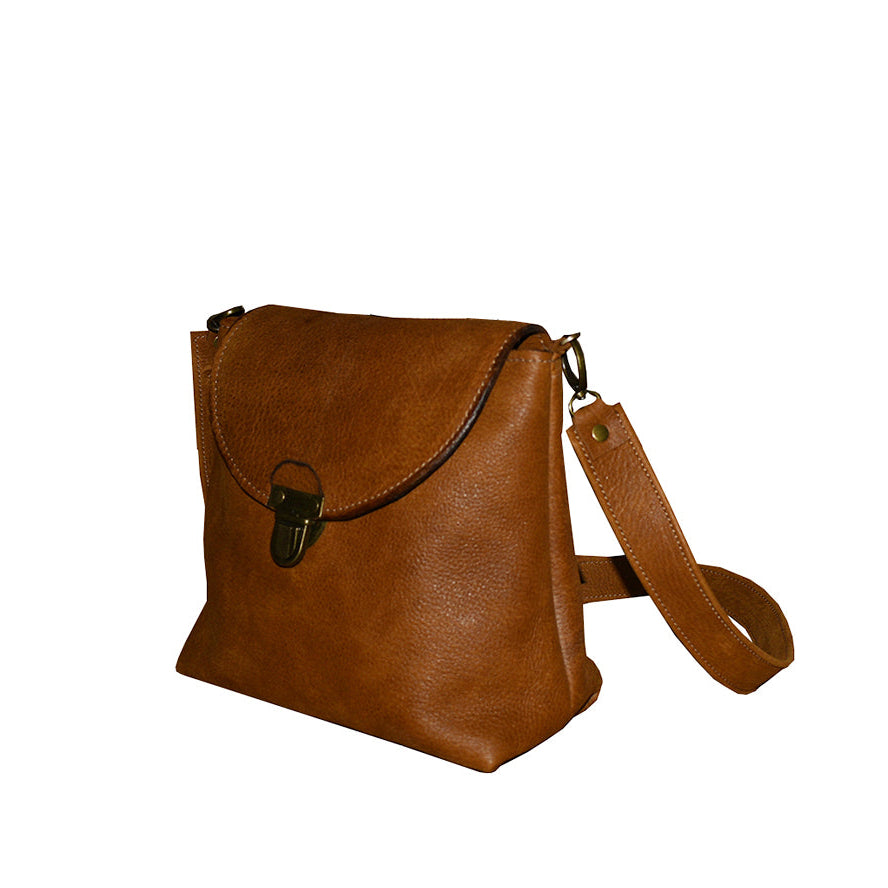 תיק צד מעור חום דבש איטלקי אותנטי מחוייט עם אבזם רטרו