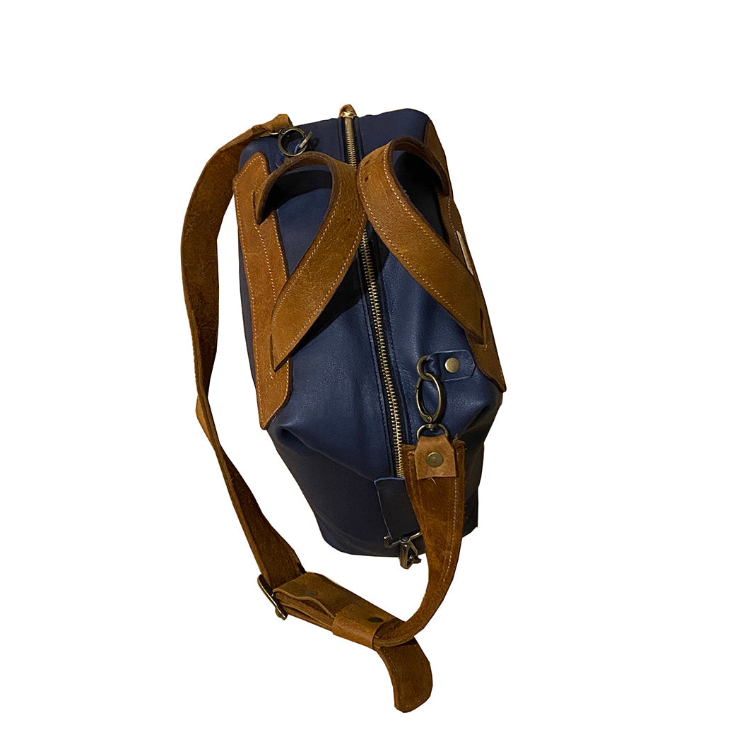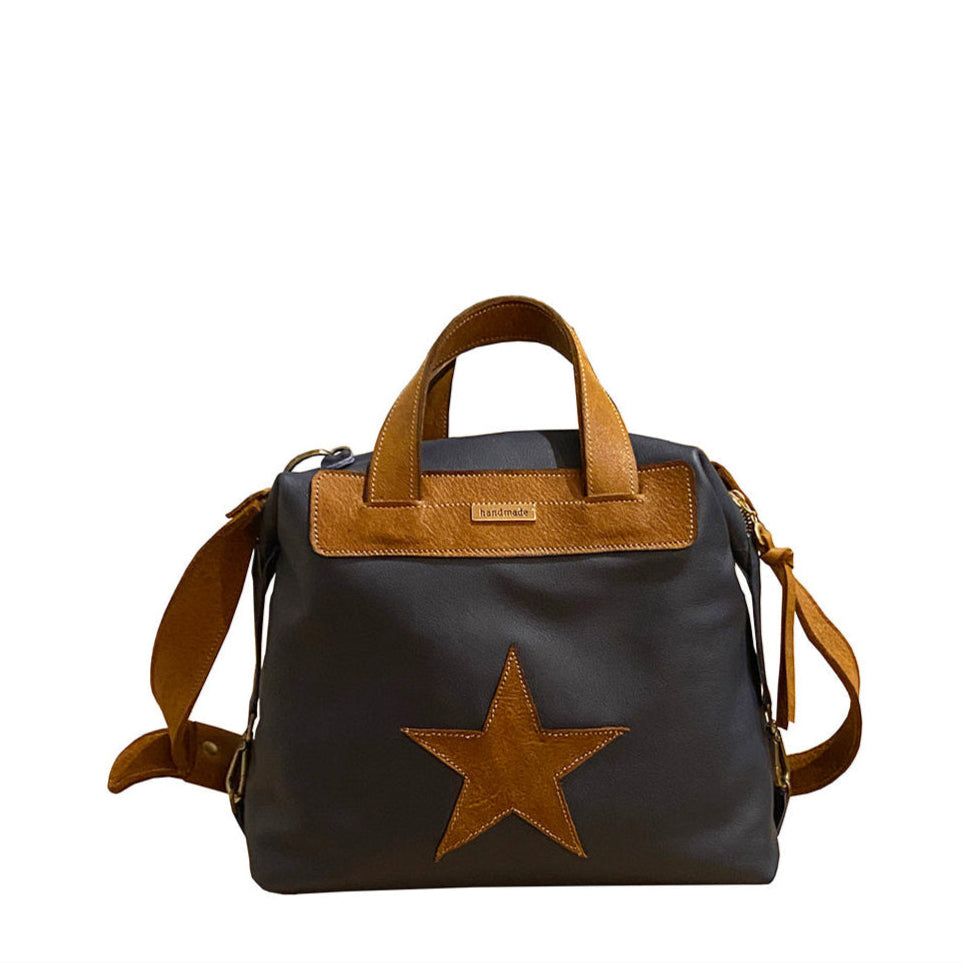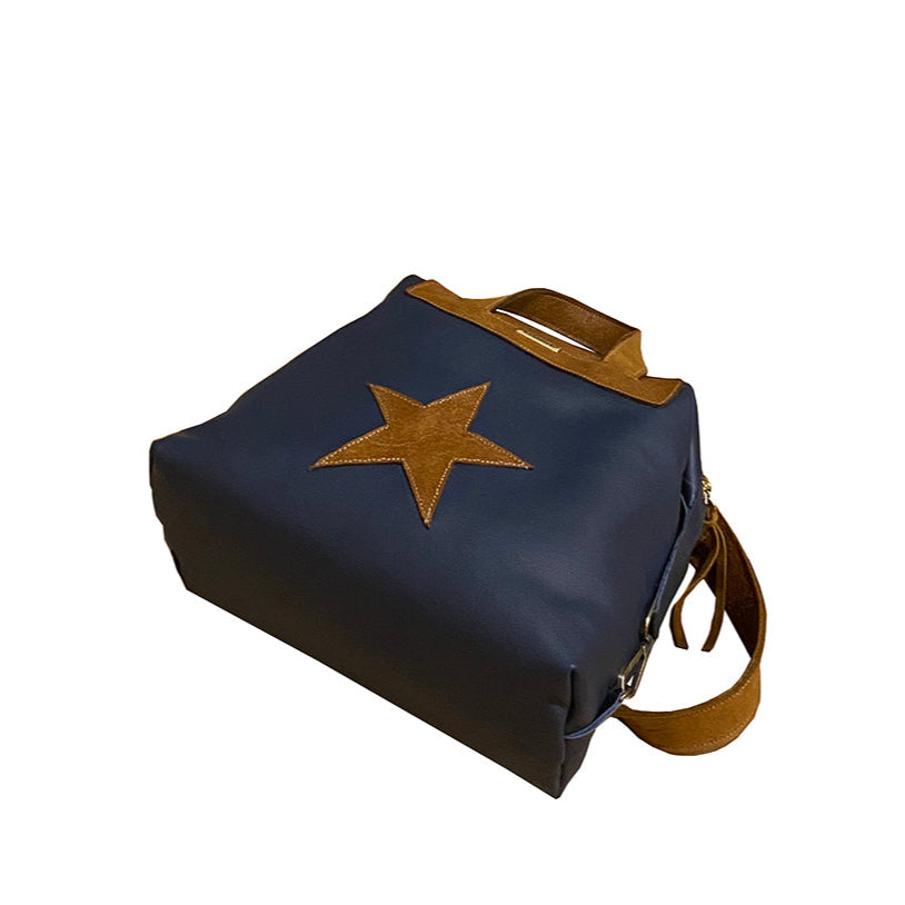 תיק עור כחול נייבי בשילוב עור חום דבש עם כוכב