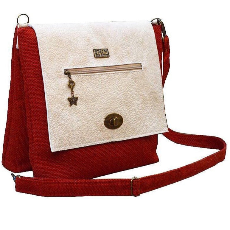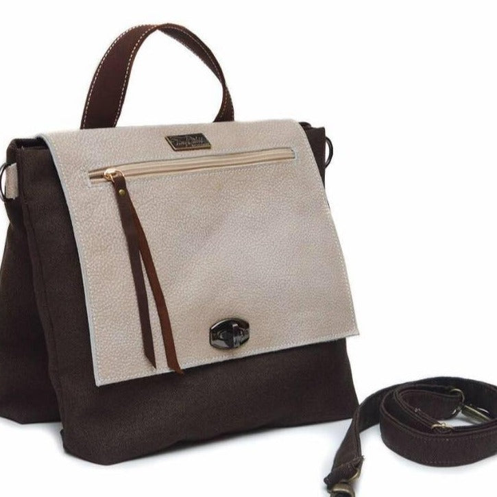 תיק בד בגוון חום כהה בשילוב עור בגוון אבן טבעי